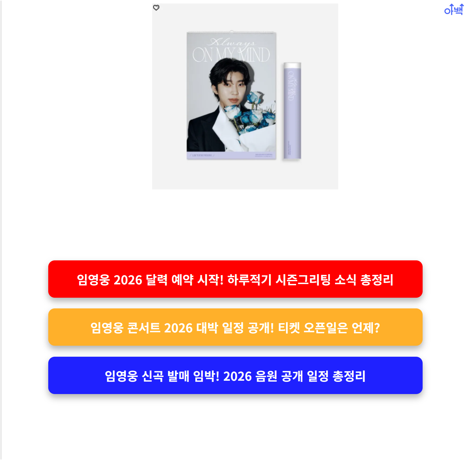 | 탁상달력 | 12개월 전 페이지마다 임영웅 화보 + 명언 수록 |