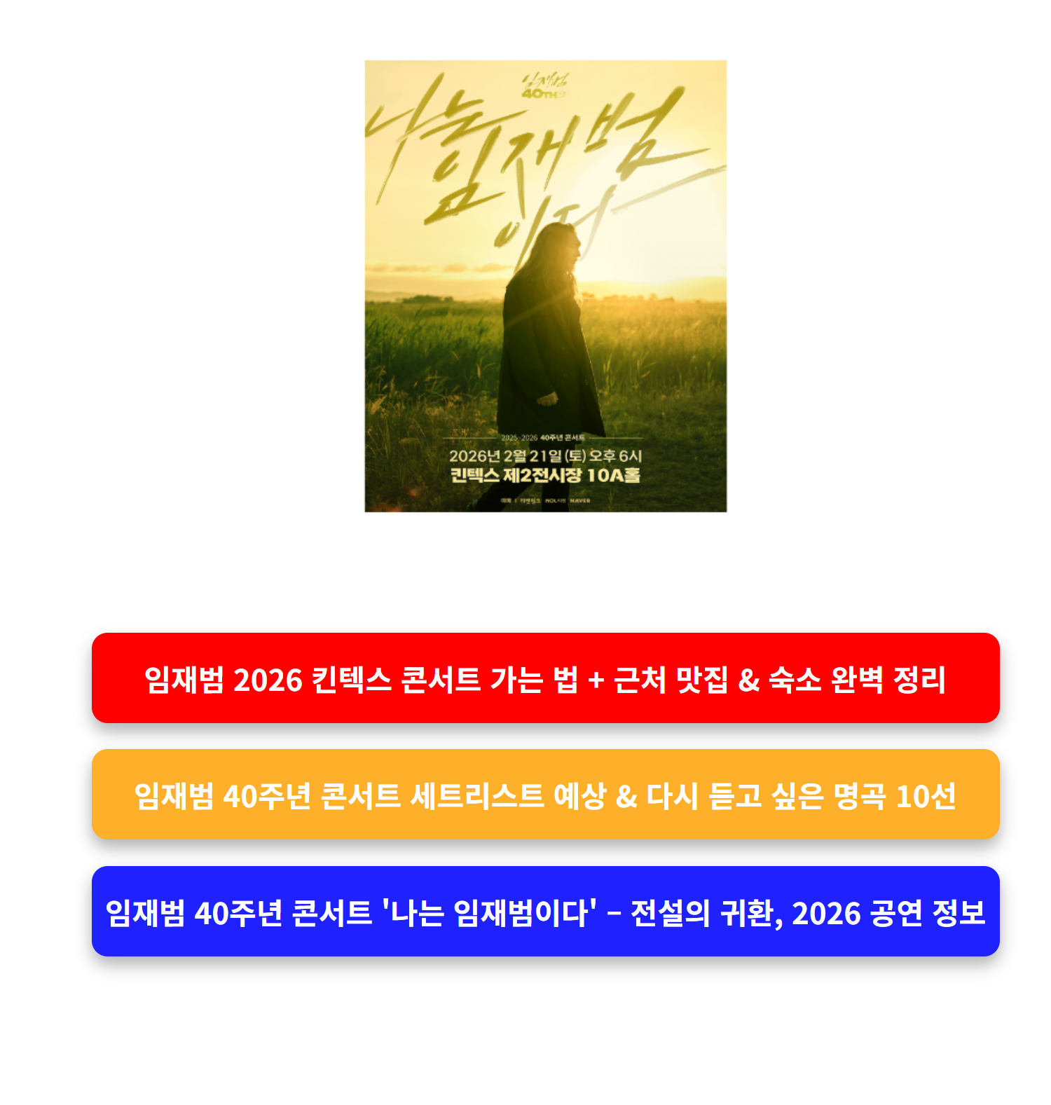 2026년 2월, 임재범 40주년 콘서트 '나는 임재범이다'가 드디어 열린다는 소식에 음악 팬들의 심장이 뜁니다.