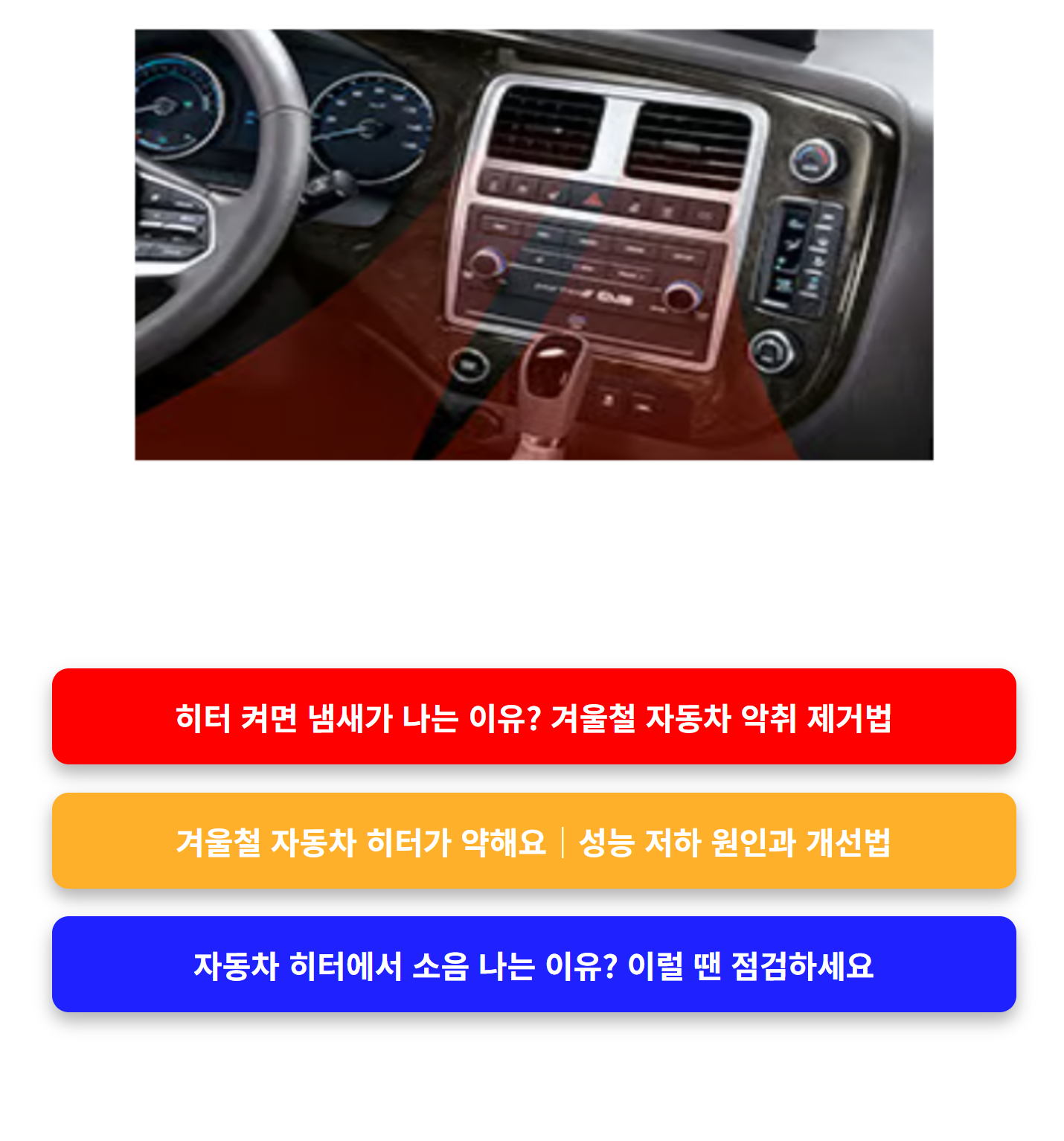 자동차 히터 고장일 수 있습니다. 히터는 단순한 편의 장비가 아니라, 겨울철 안전 운전에 필수인 요소인데요. 이번 글에서는 ‘히터 고장의 증상, 원인, 해결법’까지 한 번에 정리해드립니다.