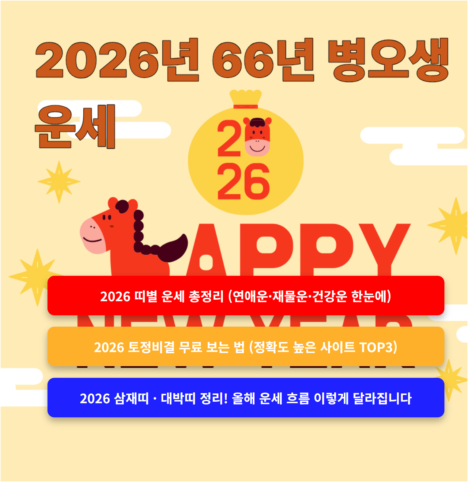 특히 2026년은 병오년(火의 기운)과 겹쳐, 감정의 기복, 인간관계 트러블, 지출 증가 등으로 이어질 수 있으니